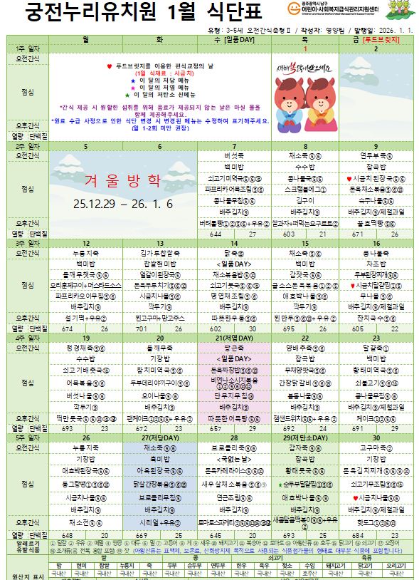 ## 2026년 1월 식단표##