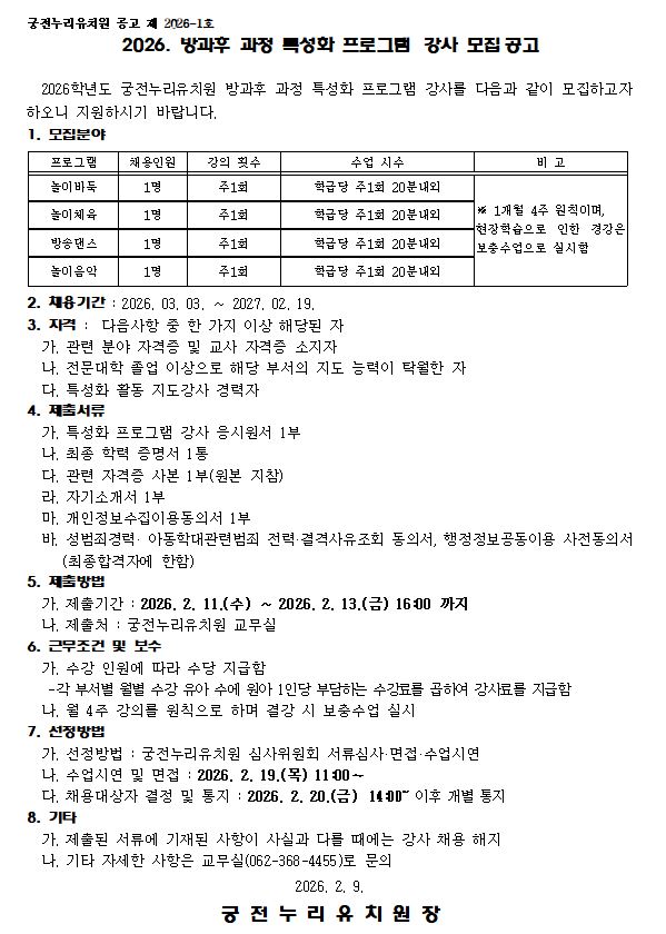 ##2026년 특성화강사 모집 공고## [0]