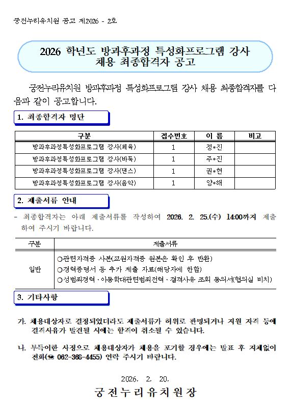##2026년 특성화강사 합격자 발표## [0]